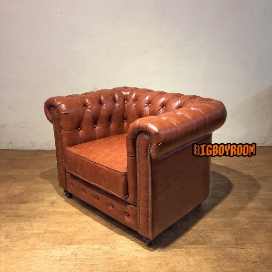 英式經典 Chesterfield Style系列 棕色系 單人拉扣沙發S82 客製化