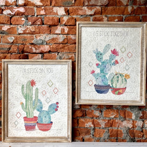復古 造型 仙人掌 Stick together壁掛 掛畫 一組 W288