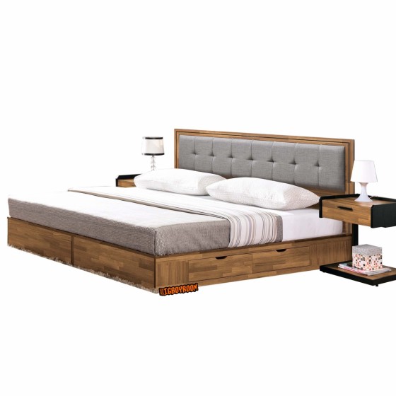 美式 木色造型床組 加大雙人床 F70