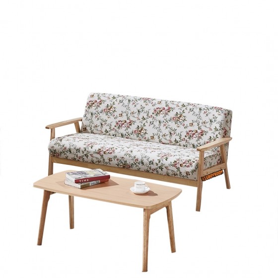 材質: 實木骨架+高密度泡綿、橡膠木實木+平織印花布、固定座墊 單人 64*D65*H71座深46座高40 $:3170 雙人 112*D65*H71座深46座高40 $:5220 三人 155*D65*H71座深46座高40 $:7440 茶几 MDF板材+實木腳座 寬110X深60X高42公分 $:2060