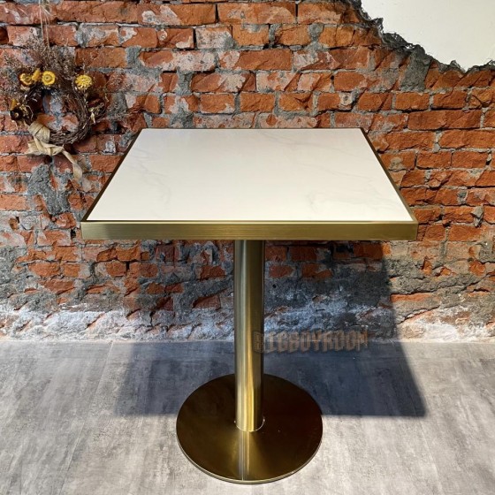 法式風格 金色系白色大理石造型 小酒館餐廳 餐桌 客製化 (天然原石仿大理石) T400
