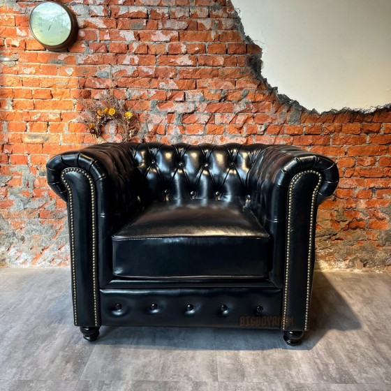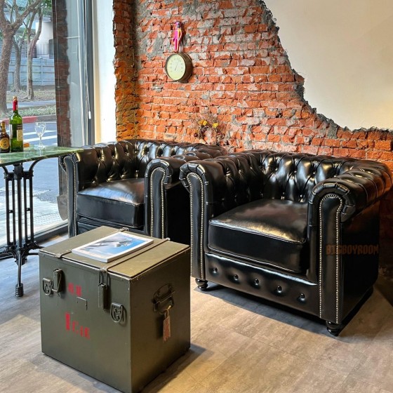 來自 18 世紀英國的典雅比例,延伸至私人會所與經典影像。Style A 單人座 106cm 保留深拉扣與卷扶手的完整語彙, 以一人獨享的尺度呈現,適合搭配客廳主沙發、臥室閱讀角或飯店大廳的一人位配置。實木框架與高密度坐墊提供紮實支撐, 是將 Chesterfield 氣質延伸到空間角落的關鍵單品。