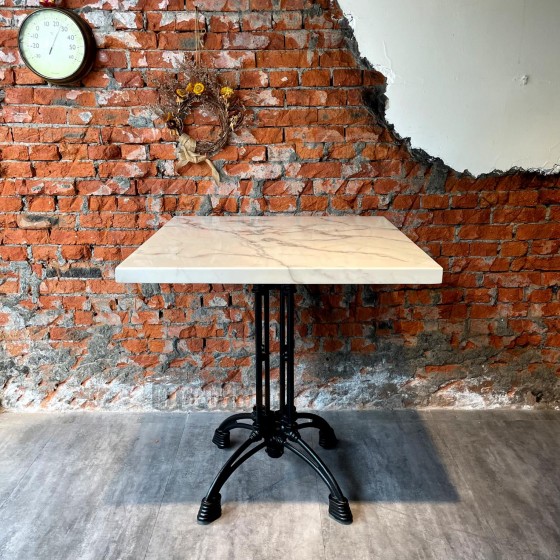 法式風格 白色大理石造型 圓弧鑄鐵腳 小酒館餐廳 餐桌 客製化 (天然原石仿大理石) T446