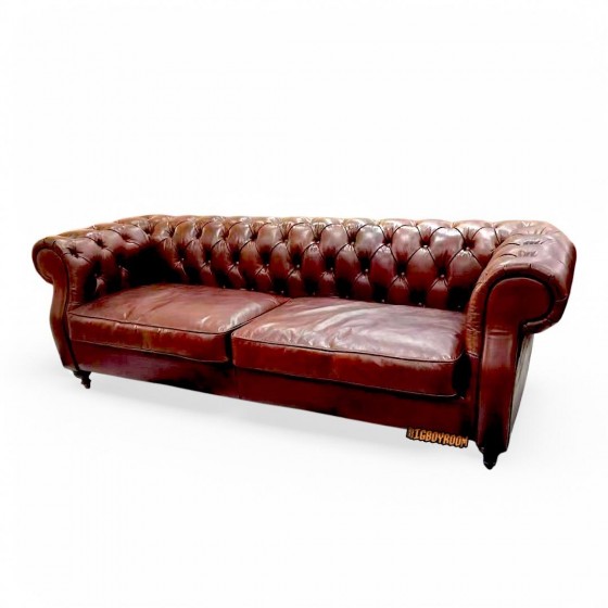 英式經典 Chesterfield 系列 拉扣沙發 棕紅色系 全牛皮 三人座沙發 S421 客製化