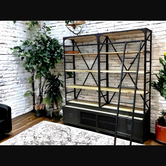 法式復古舊化鐵製實木展示架書架 C163 客製化