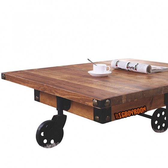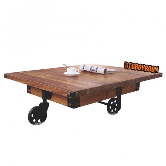 工業風實木面鑄鐵輪造型茶几 T164 JE系列