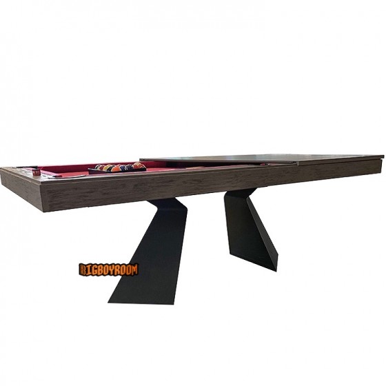 展示尺寸:FORGE PRISM 7ft-class 撞球桌餐桌 折面幾何雙鐵件基座(例:210 × 100 × 78 cm)
