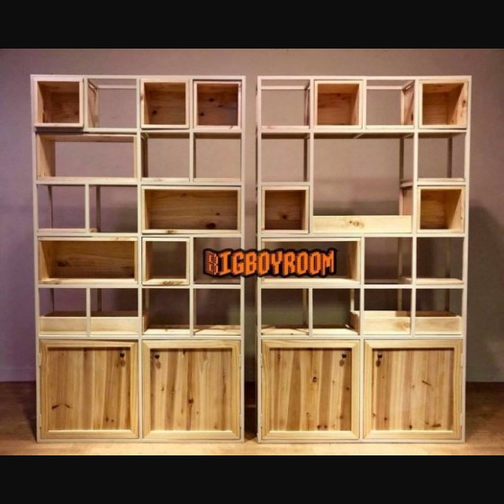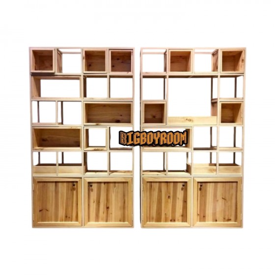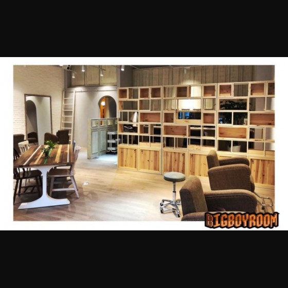 活動式的實木箱體及層板 讓正反面都能夠有展示的效果 寸土寸金的空間都不浪費 原木色系與香草色系的搭配 相較於黑色硬式工業風鐵件烤漆 多了些奢華精緻的氛圍 感謝業主讓BIg Boy Room 有機會嘗試不一樣的風格客製化設計 賣場內還有需多客製化產品 圖2.3 三座共360x25x210cm 顏色尺寸可訂製化 若有特別需求 請與我們聯繫 產品購買須知