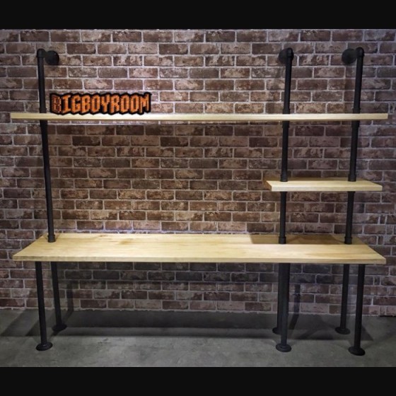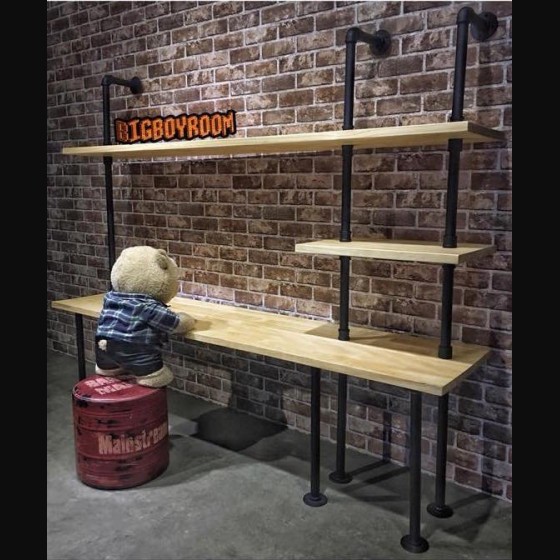 工業風書桌 與 水管置物層架