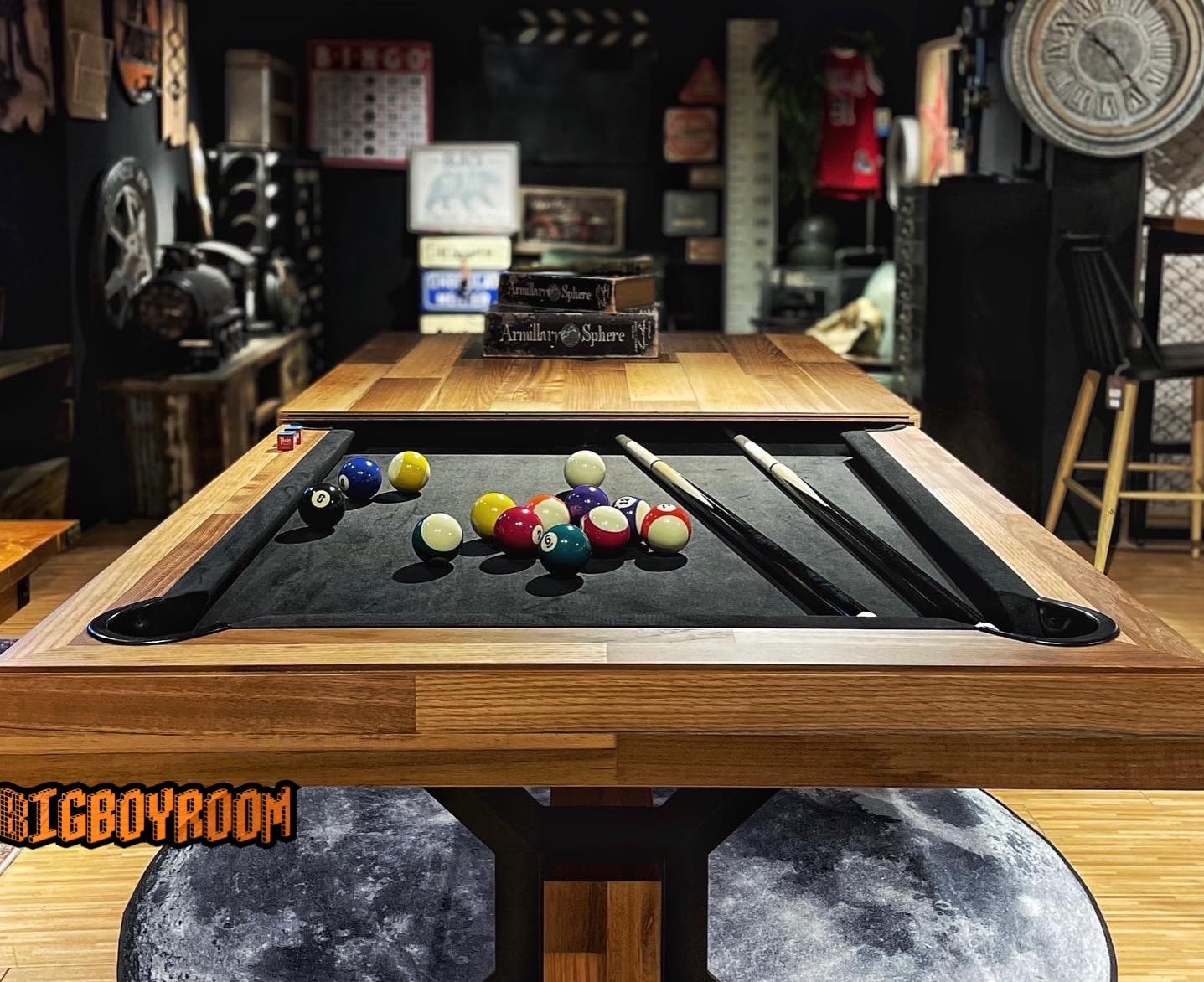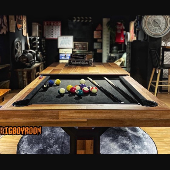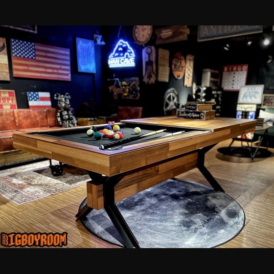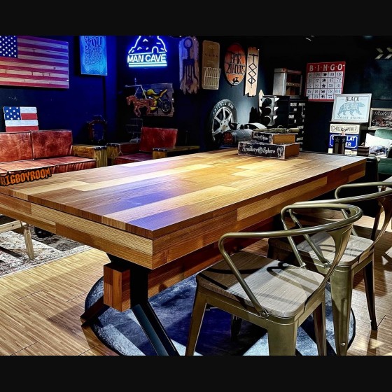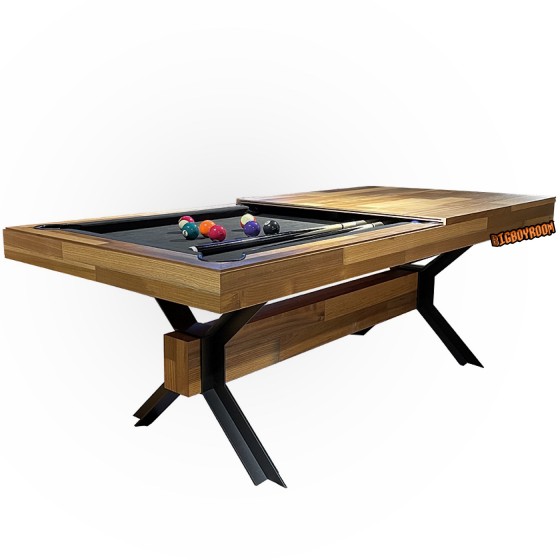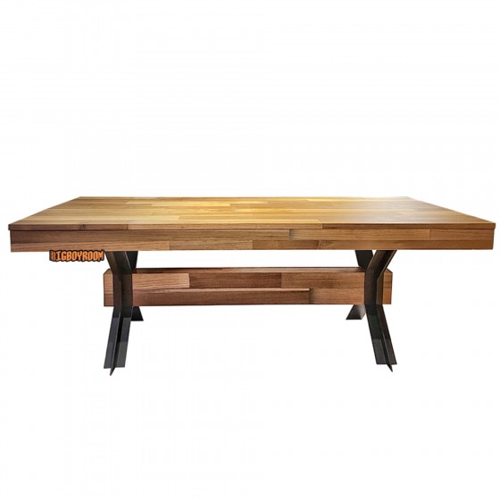 展示尺寸:FORGE X BEAM 7ft-class 撞球桌餐桌(210×100)|實心鐵件 X 腳