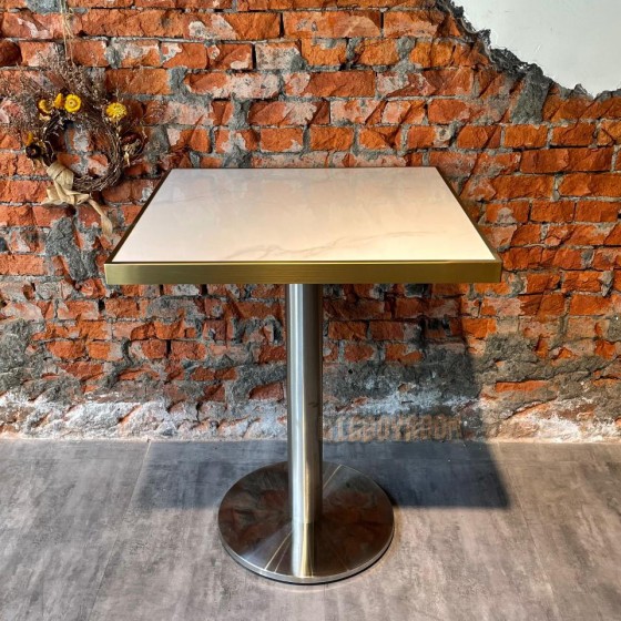 法式風格 白色系金邊大理石造型 小酒館餐廳 不鏽鋼腳 餐桌 客製化 (天然原石仿大理石) T415