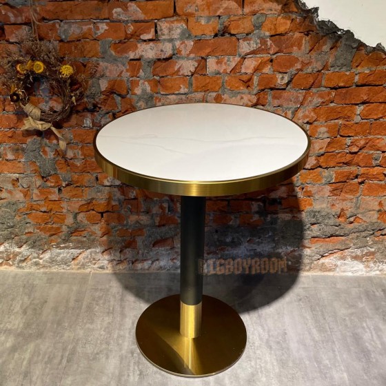 法式風格 白色金邊大理石造型 小酒館餐廳 餐桌 客製化 (天然原石仿大理石) T433