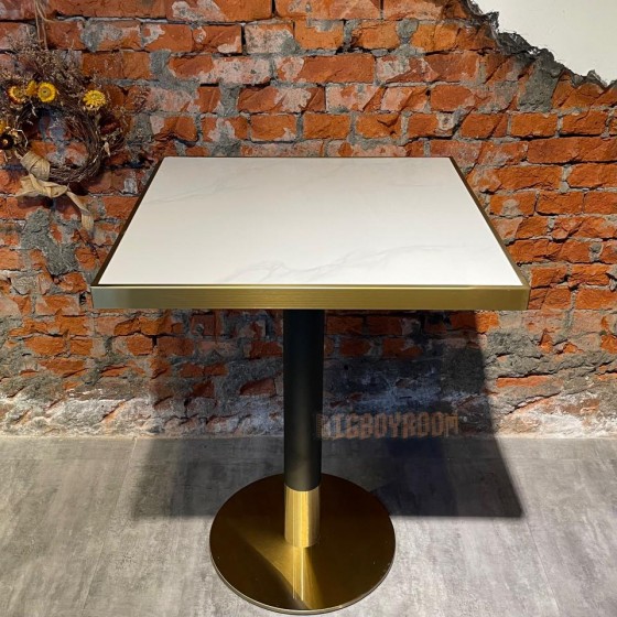 法式風格 白色金邊大理石造型 小酒館餐廳 餐桌 客製化 (天然原石仿大理石) T431
