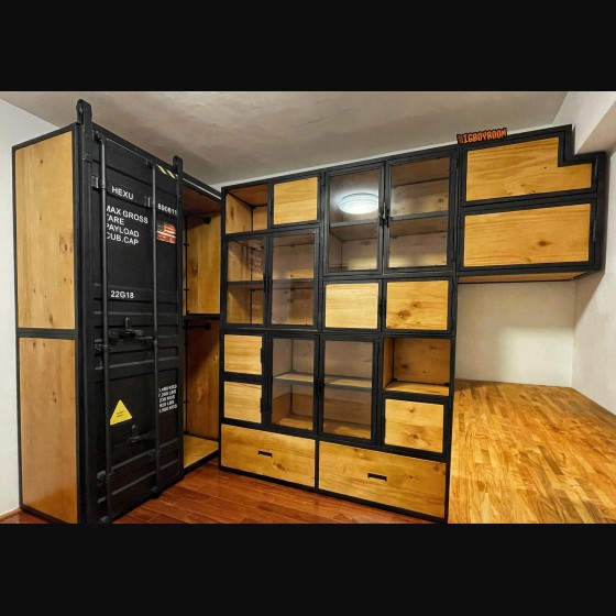 美式滑門貨櫃造型衣櫃玄關櫃 客製化C234