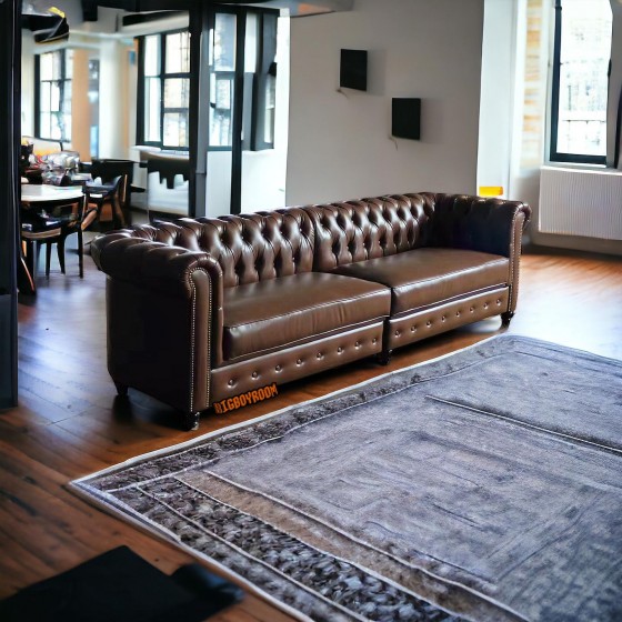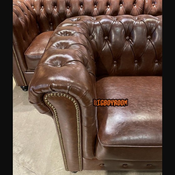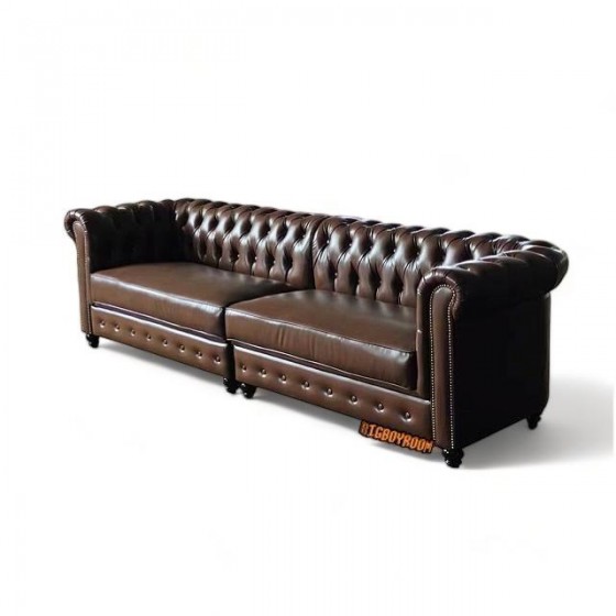 英式經典 Chesterfield Style A 系列 棕色系 四人拉扣沙發 S369