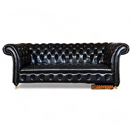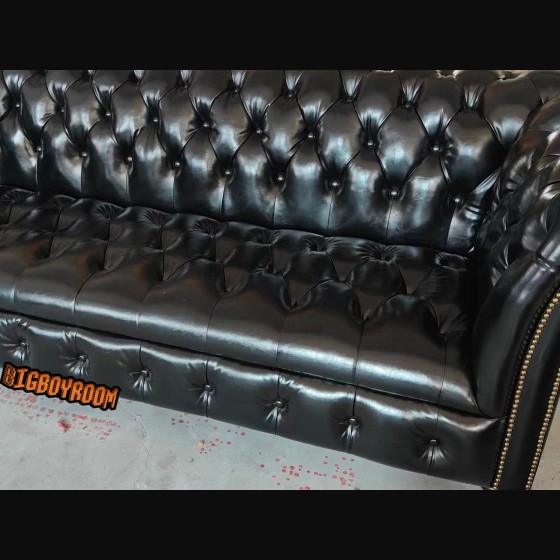 英式經典 牛皮拉扣沙發 黑色系 四人沙發S001客製化