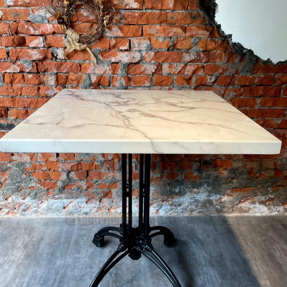 法式風格 白色大理石造型 圓弧鑄鐵腳 小酒館餐廳 餐桌 客製化 (天然原石仿大理石) T446