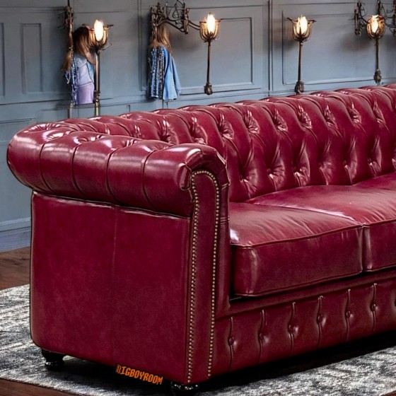 英式經典 CHESTERFIELD STYLE A 系列 拉扣沙發 紅色系三人沙發S372 客製化
