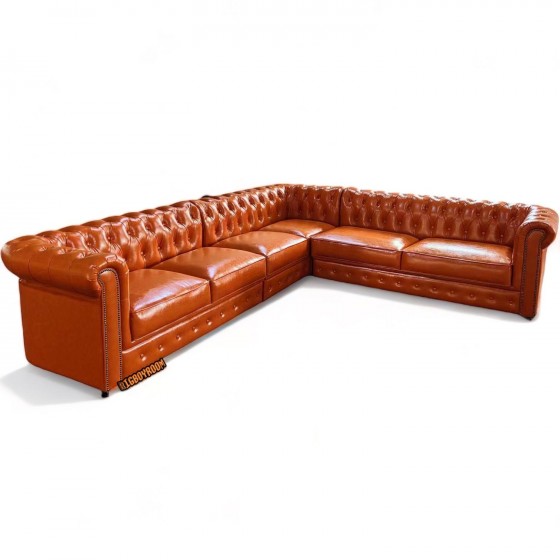 英式經典 CHESTERFIELD STYLE系列 拉扣沙發 棕色系多人座 L型沙發S380
