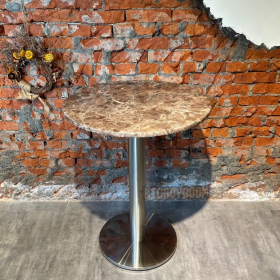 法式風格 棕色系大理石造型 小酒館餐廳 不鏽鋼腳 餐桌 客製化 (天然原石仿大理石) T444