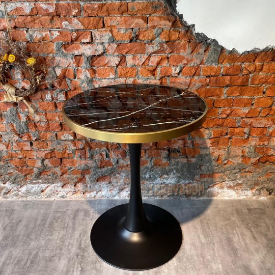 法式風格黑色系金邊圓型大理石造型 Bistro酒館餐酒館天然原石仿大理石 T453