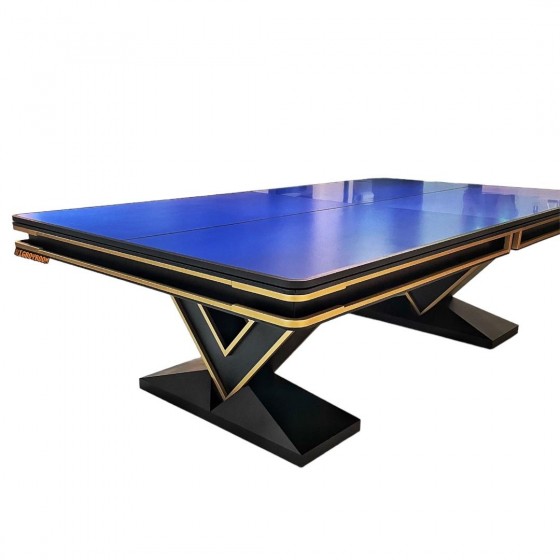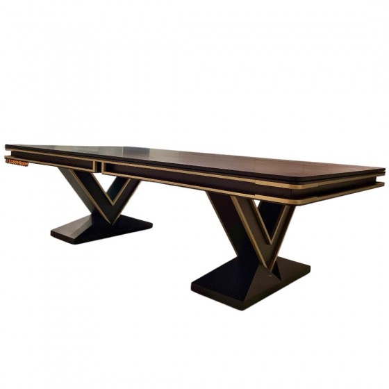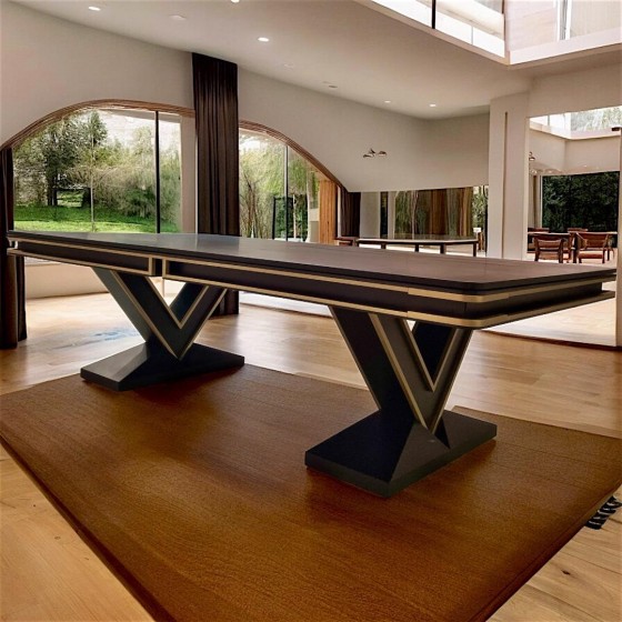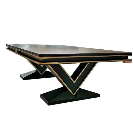 展示尺寸:AURUM V TRIO 三用 (262×145cm)|雙 V 基座・裝飾派幾何|餐桌・撞球・桌球