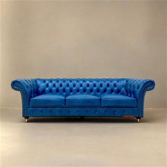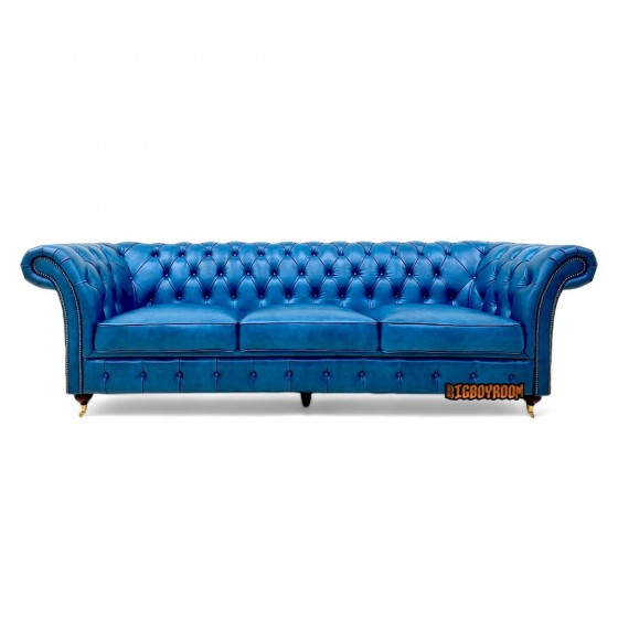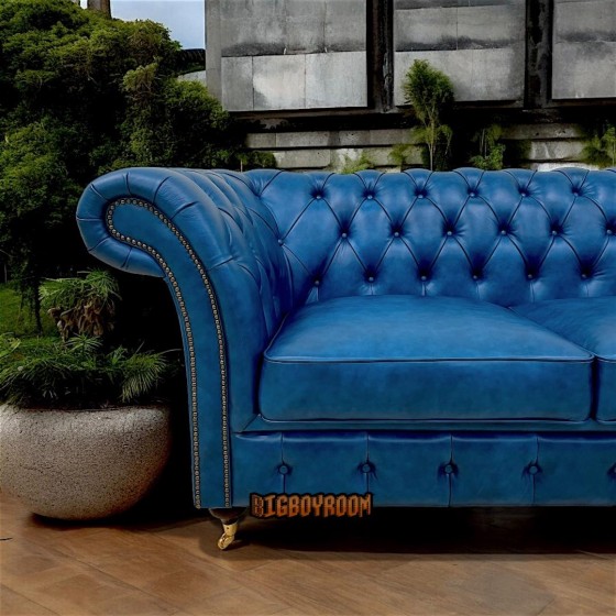 英式經典 CHESTERFIELD STYLE古典系列 拉扣紐扣復古沙發 藍色系三人四人沙發S398 客製化