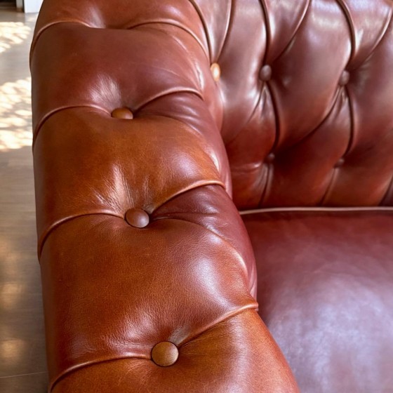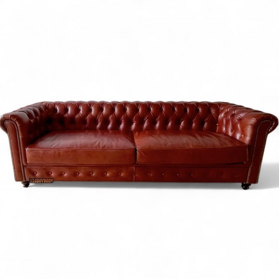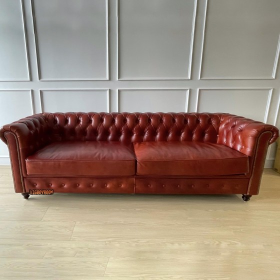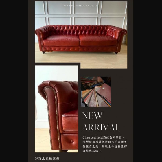 英式經典 CHESTERFIELD STYLE A 系列 拉扣沙發 棕紅色系 全牛皮 三人座沙發 S416 客製化