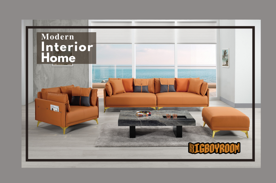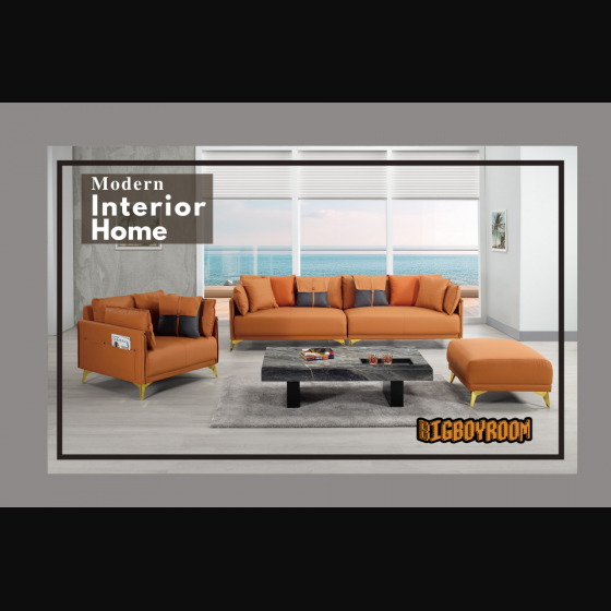 整套 橘色貓抓皮沙發造型 1+4+1沙發 S437