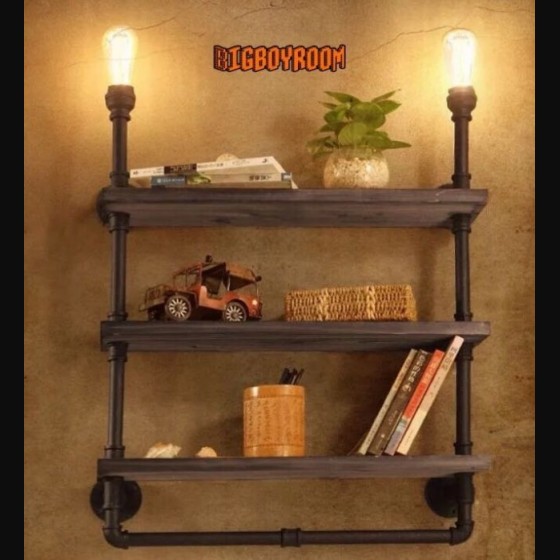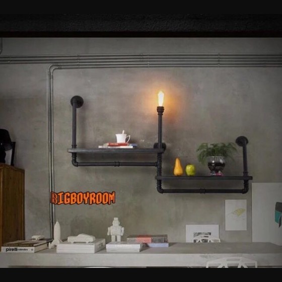 實木與鐵水管架壁架C10 客製化