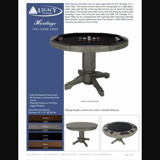 Heritage 3 in 1 Game Table With Bumper Pool 3用遊戲桌