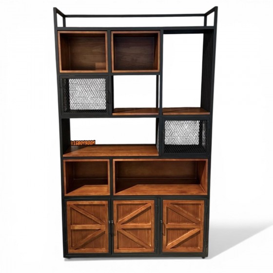 Chicago 美式工業風穀倉門展示收納櫃Clever Storage, Subtle Character 不是只是收納櫃, 靈感來自美國經典穀倉門(Barn Door Heritage), 上層開放層架、中層鐵網門、下層三開門配置, 不論是客廳、書房,或商業空間,