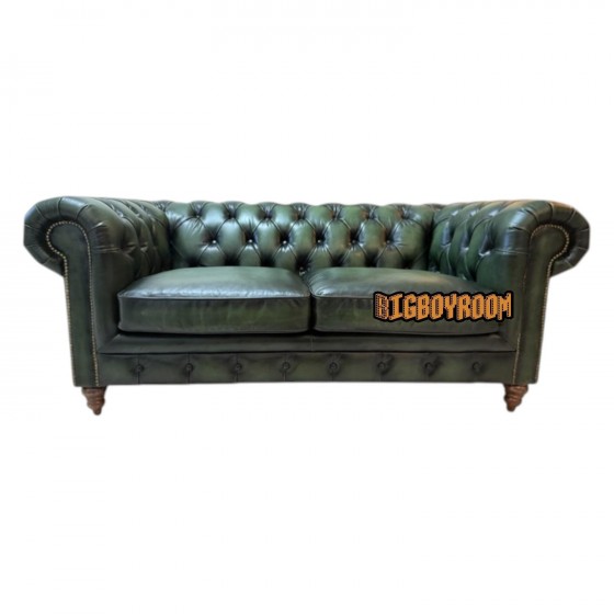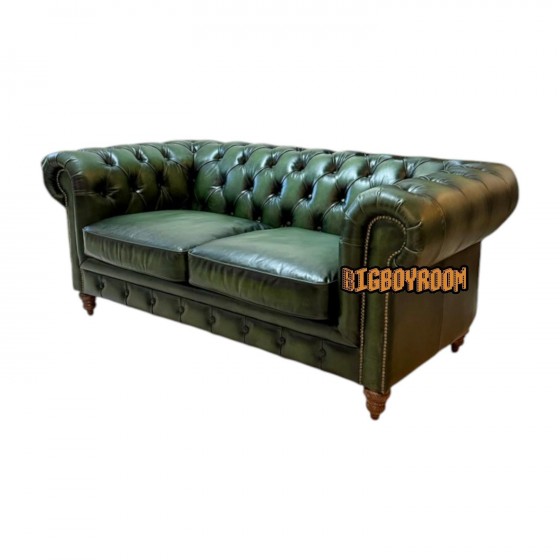 Style C 以 Chesterfield 代表性的深拉扣與菱格紋為基礎,復刻百年歐美經典比例,搭配南美頭層半苯染工藝牛皮, 將高度控制在 76cm、座深延伸至 97cm,在沈穩量體與輕盈視覺之間取得平衡。245cm 三人座提供寬闊橫向空間, 既能三人並坐,也適合兩人各據一側半躺放鬆;若是大坪數客廳,300cm 加長款則帶來更充裕的視覺與使用尺度。 南美頭層牛皮在大面積拉扣與扶手轉折處自然產生細緻皺褶,結合實木框架、羽絨與高密度坐墊,將英式會所般的氛圍帶入日常居家。